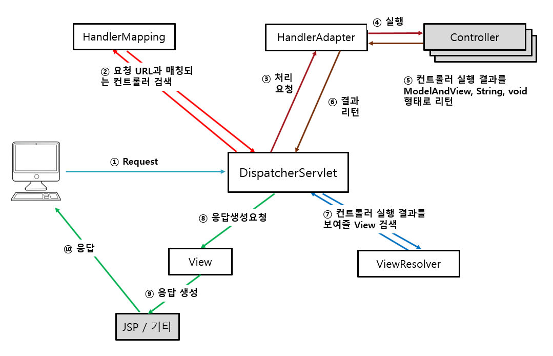 - DispatcherServlet은 최종 결과를 브라우저로 전송
